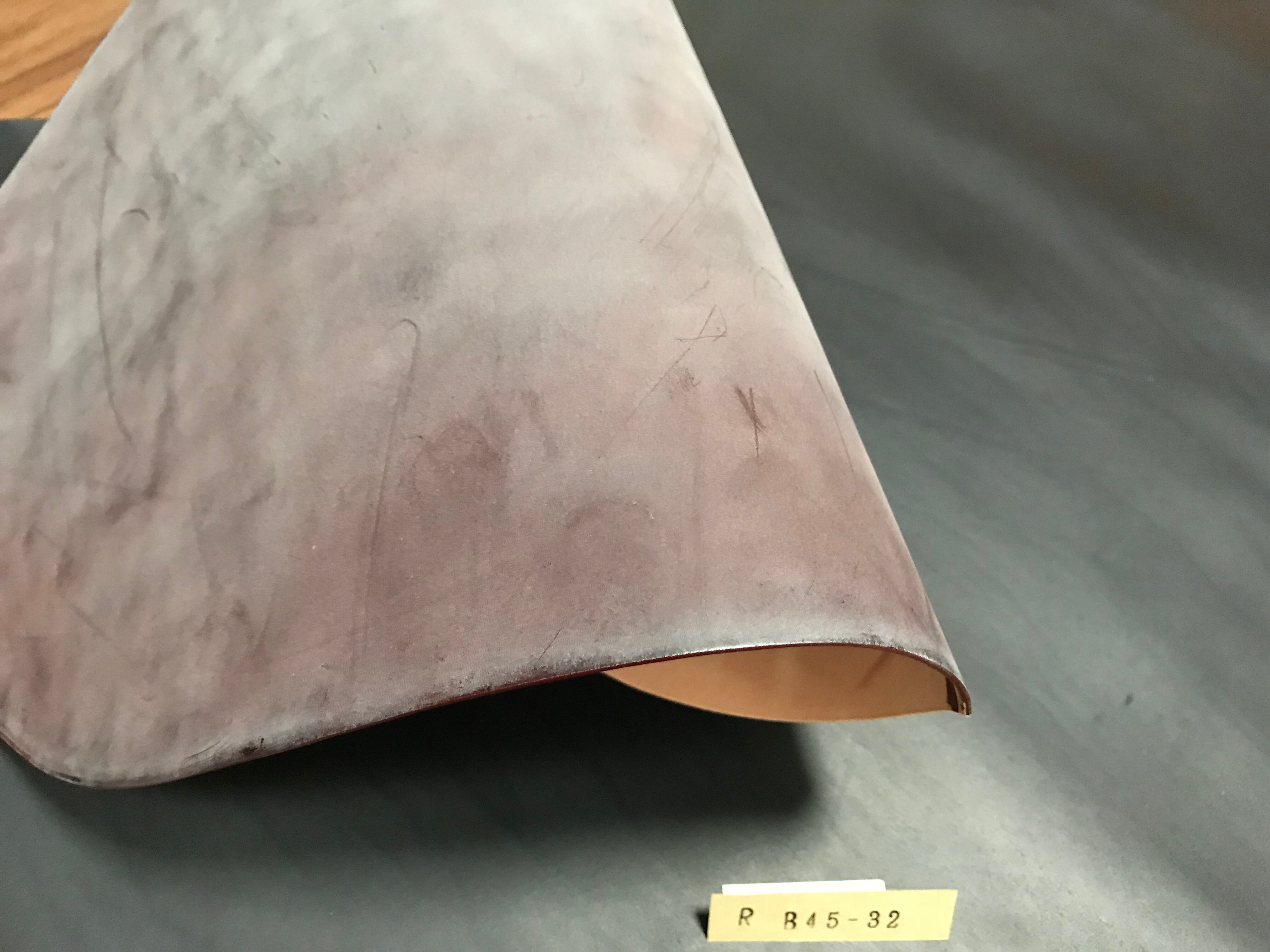 農耕馬のお尻の一部から採れる革のこと。 現在では、農耕用の馬というのは生産されておらず、食肉用としてごく少数生産されている馬から採られています。 世界でも1カ月に数千頭分ほどしか採れないと聞けば、その希少価値の高さがわかってもらえるはずです。 また、通常の革素材のように皮膚表面の部分は使いません。